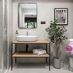 Luxury Art Apartment Centrum Poznan Plac Wolnosci propose 1 salle de bain avec une douche. De plus, la salle de bain comprend un sèche-cheveux, un bonnet de douche et des draps de bain.